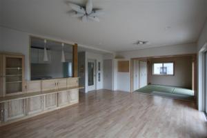 対面式で使いやすいキッチンや、スッキリ整頓できる造作棚など、