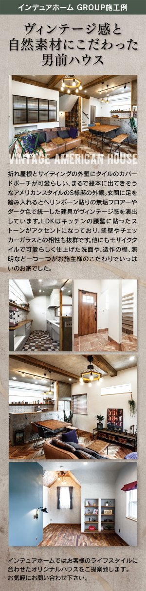 ヴィンテージスタイル、カリフォルニアスタイル、フレンチスタイル、プロヴァンススタイル、アメリカンスタイル、モダンスタイルの家のことなら、私たちインデュアホーム諫早が、こだわりの住宅を自信をもって心を込めておつくりします。