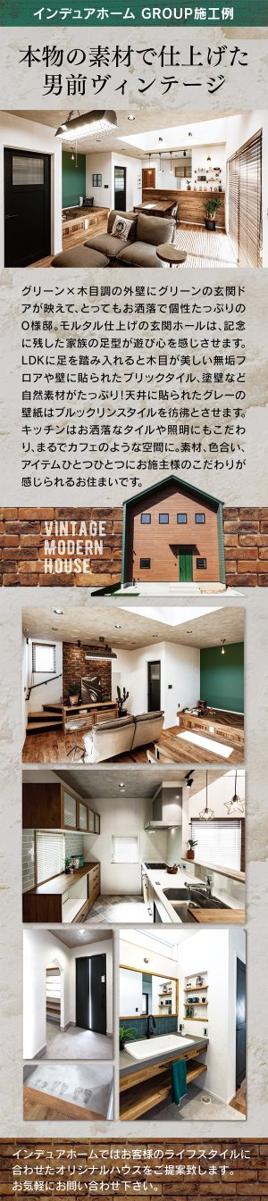ヴィンテージスタイル、カリフォルニアスタイル、フレンチスタイル、プロヴァンススタイル、アメリカンスタイル、モダンスタイルの家のことなら、私たちインデュアホーム諫早が、こだわりの住宅を自信をもって心を込めておつくりします。自然素材の塗壁や、無垢のフロアーなどをふんだんに使用して、高性能でエコな住まいづくりを心がけています。新築(注文住宅)・リノベーションのお問い合わせは、お気軽にインデュアホーム諫早までご相談下さい。