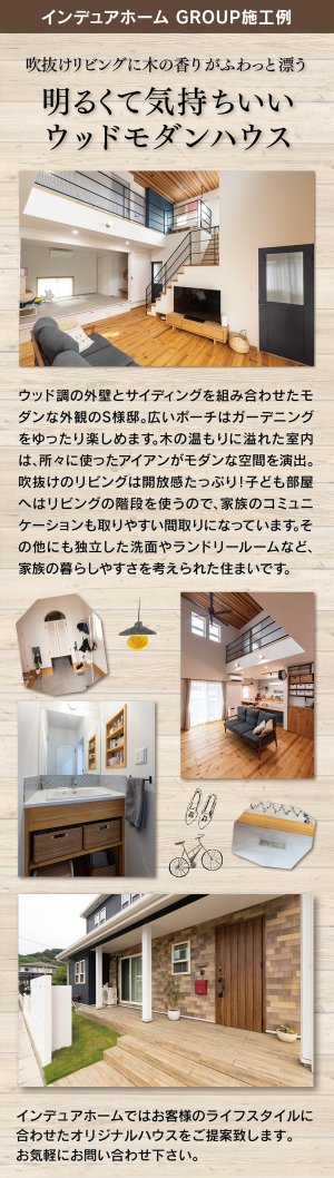 ヴィンテージスタイル、カリフォルニアスタイル、フレンチスタイル、プロヴァンススタイル、アメリカンスタイル、モダンスタイルの家のことなら、私たちインデュアホーム諫早が、こだわりの住宅を自信をもって心を込めておつくりします。