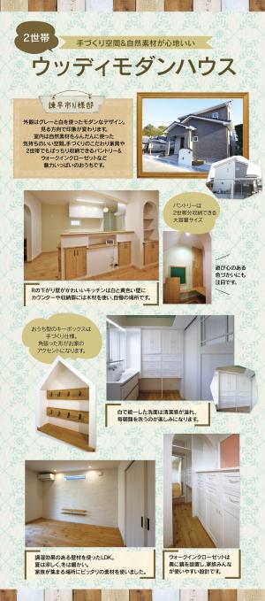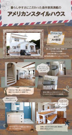 茶色の窓飾りがアクセントになった真っ白の外観に、リビング、キッチン、洗面など居心地の良さ、使いやすさを考えた自然素材とオリジナル家具たっぷりのお家です。