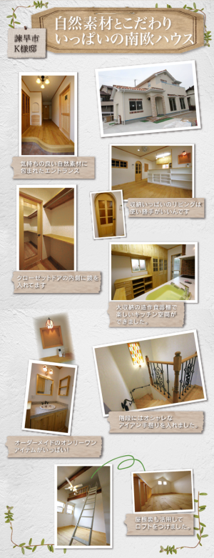 何度も住宅見学会を見て「自然素材の家って、なんて気持ちいいんだ!」と実感したのが、家づくりのきっかけとなったK様邸。木の家の心地よさに触れてみて「こんな空間なら暮らしてみたい」と思い、実現した夢のマイホームです。