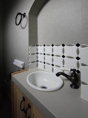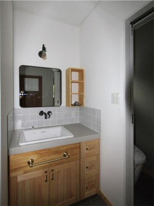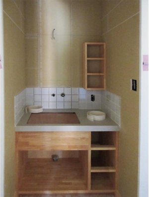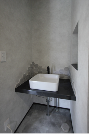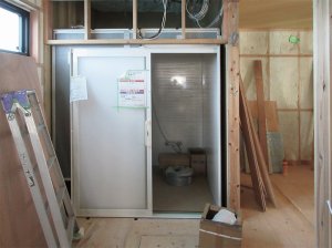 内部ではお風呂が設置されました。床張工事も同時に進行中です。