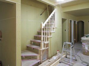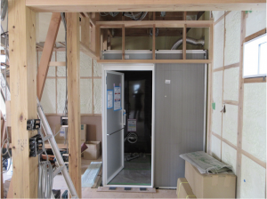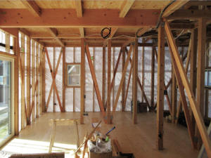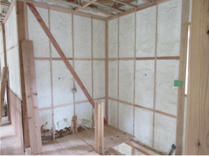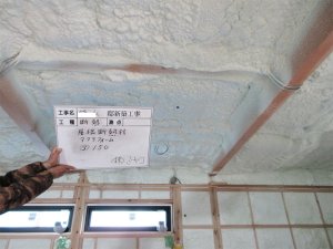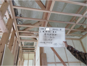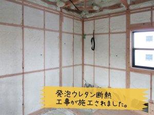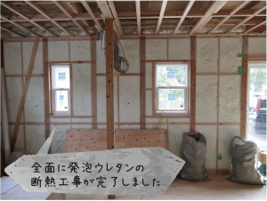 内部では気密性のよい発泡ウレタンの断熱工事が終わりました。