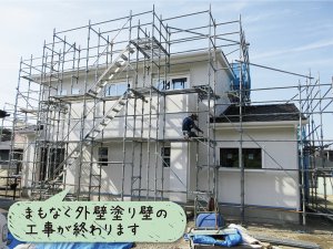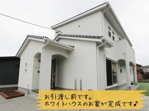 新築(注文住宅)の塗壁のホワイトハウスの建物がいよいよ完成です♪