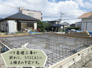 基礎工事が終わり、7月13日に上棟式の予定です。