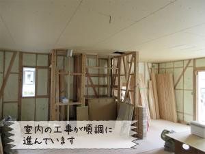 内部は玄関の基礎断熱が終わり、本格的に室内工事が始まります。