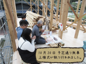 職人さんに体調気をつけてもらい大工工事を頑張ってもらいます。