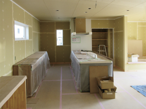 外部は透湿防水シートを貼り終え、これから外壁工事に入ります。